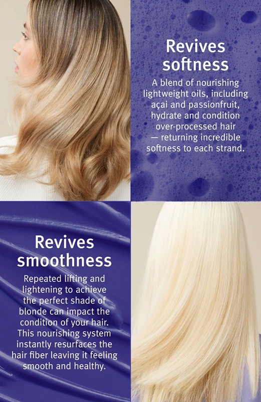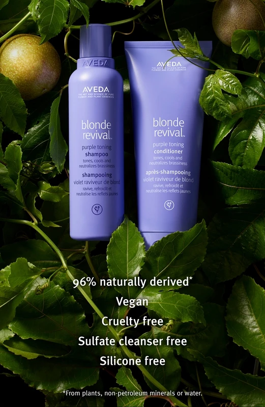 Pour un résultat optimal, combinez avec le shampoing tonifiant violet pour les cheveux avec décoloration ou balayage Aveda Revival™ Purple Toning Shampoo.