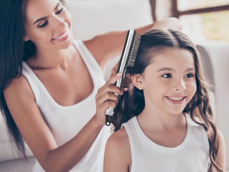 Allumez la brosse et coiffez lentement les mèches de cheveux. Continuez en faisant glisser la brosse des racines jusqu’aux pointes.