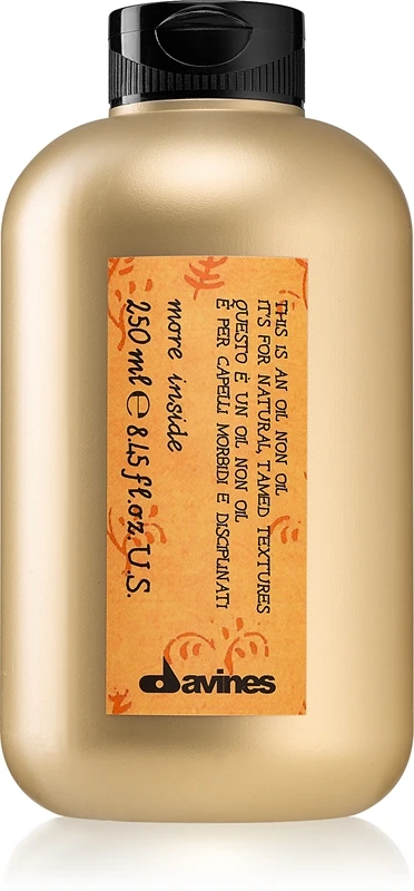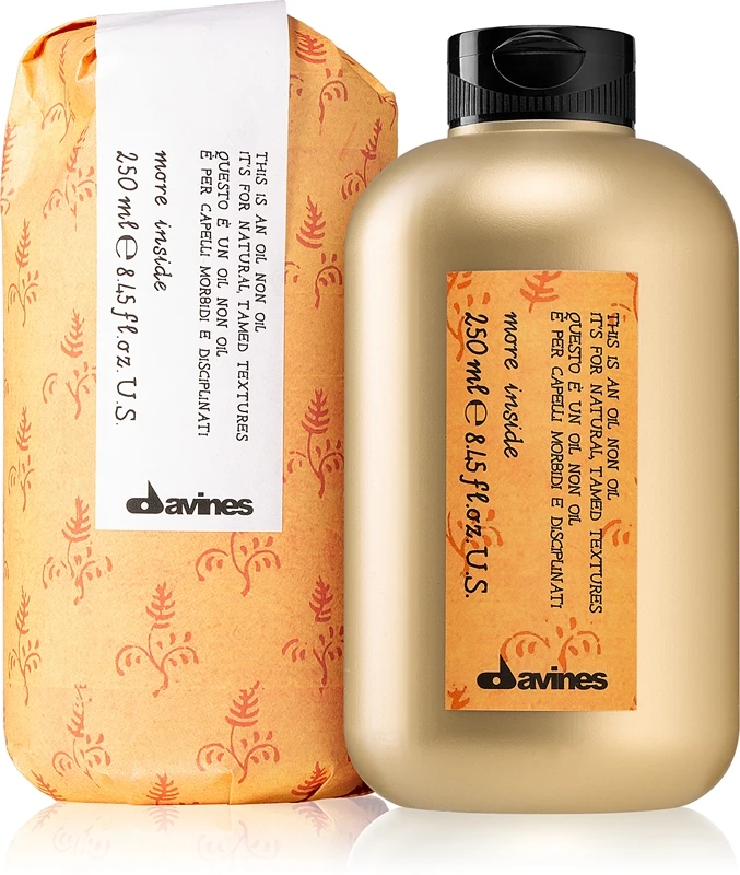 Vous souhaitez ajouter un peu plus de texture et de définition à votre coiffure, tout en conservant l’aspect naturel de vos cheveux ? L’huile nourrissante cheveux Davines More Inside donnera à vos cheveux un traitement léger et une hydratation. Elle vous débarrassera également des frisottis disgracieux et lissera la surface de votre coiffure. Aucun résidu, aucun effet collant ou gras.