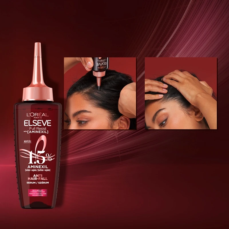 Ayez des cheveux magnifiques, depuis les racines jusqu’aux pointes. Le sérum L’Oréal Paris Elseve Full Resist vous garantit tout le soin requis par des cheveux secs, cassés, abîmés, fragiles ou ayant tendance à chuter. Grâce à ses effets cliniquement prouvés, le complexe Aminexil pénètre jusqu’au cœur des cheveux pour les renforcer et ainsi réduire leur chute. En utilisant régulièrement ce produit pendant 6 semaines, vos cheveux seront renouvelés, réparés et visiblement renforcés.