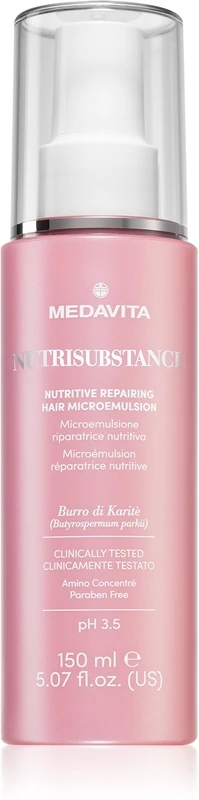 Le soin sans rinçage Medavita Nutrisubstance Nutritive Repairing Hair Microemulsion s’applique sur vos cheveux fraîchement lavés, il leur apporte tout ce dont ils ont besoin.