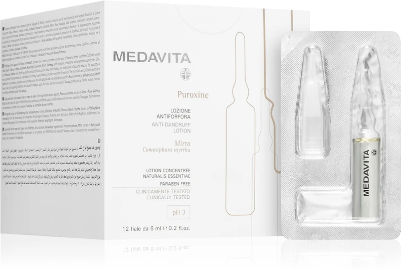 Le soin sans rinçage Medavita Puroxine Anti-Dandruff Lotion s’applique sur vos cheveux fraîchement lavés, il leur apporte tout ce dont ils ont besoin.