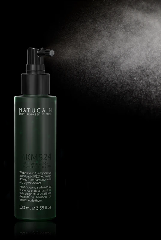 - technologie MKMS24 – ingrédient actif créé à partir de substances présentes dans le bambou, le thym et les lentilles, stimule les fibres capillaires directement au niveau de la racine et réduit leur chute