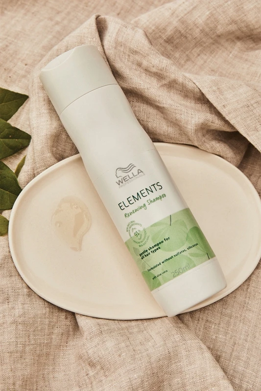 Appliquez la quantité nécessaire de shampoing Wella Professionals Elements sur les cheveux mouillés, massez dans le cuir chevelu et rincez.